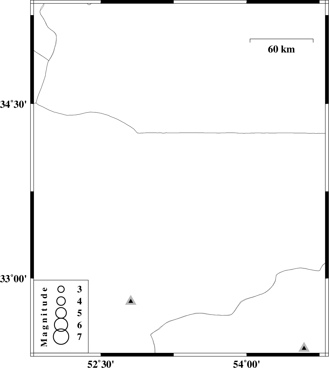 | 2020/06/29 | 09:26:02.3 | 13:56:02.3 | 33.85 | 53.31 | 10 | ML3.4 | Esfahan Province, 111 km North-East of Nain |