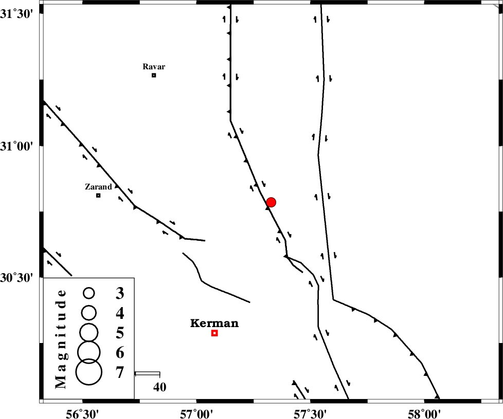 | NAYBAND_F (Length: 258 km) , Distance to epicenter: 28 km | |