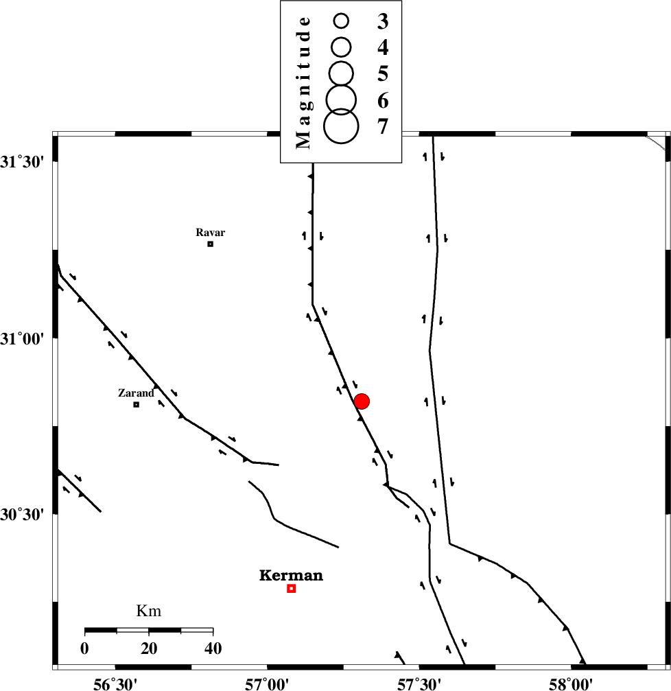 GOLBAF_SIRCH_F (Length: 114 km) , Distance to epicenter: 28 km | |