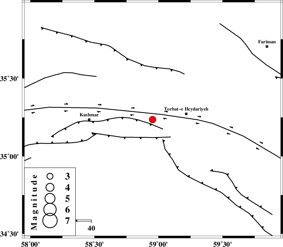 KASHMAR_F (Length: 91 km) , Distance to epicenter: 4 km | |