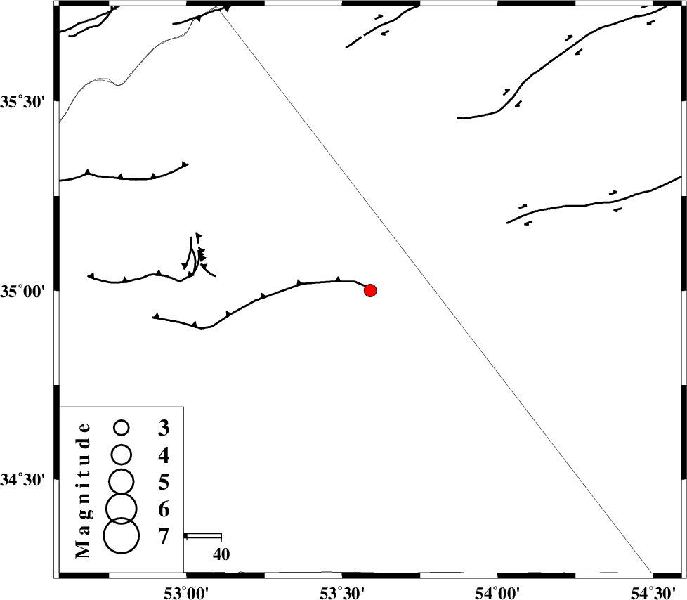 | KUH_E_GUGERD_F (Length: 73 km) , Distance to epicenter: 1 km | |