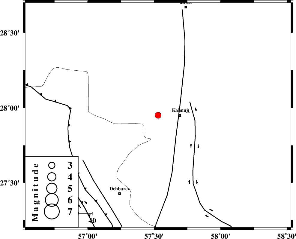 ZENDAN_MINAB_F_Z1 (Length: 183 km) , Distance to epicenter: 65 km