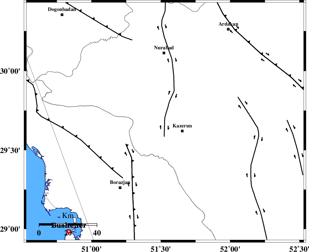| KAZERUN_F (Length: 96 km) , Distance to epicenter: 3 km | |