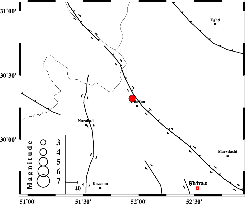 KAZERUN_F (Length: 96 km) , Distance to epicenter: 40 km