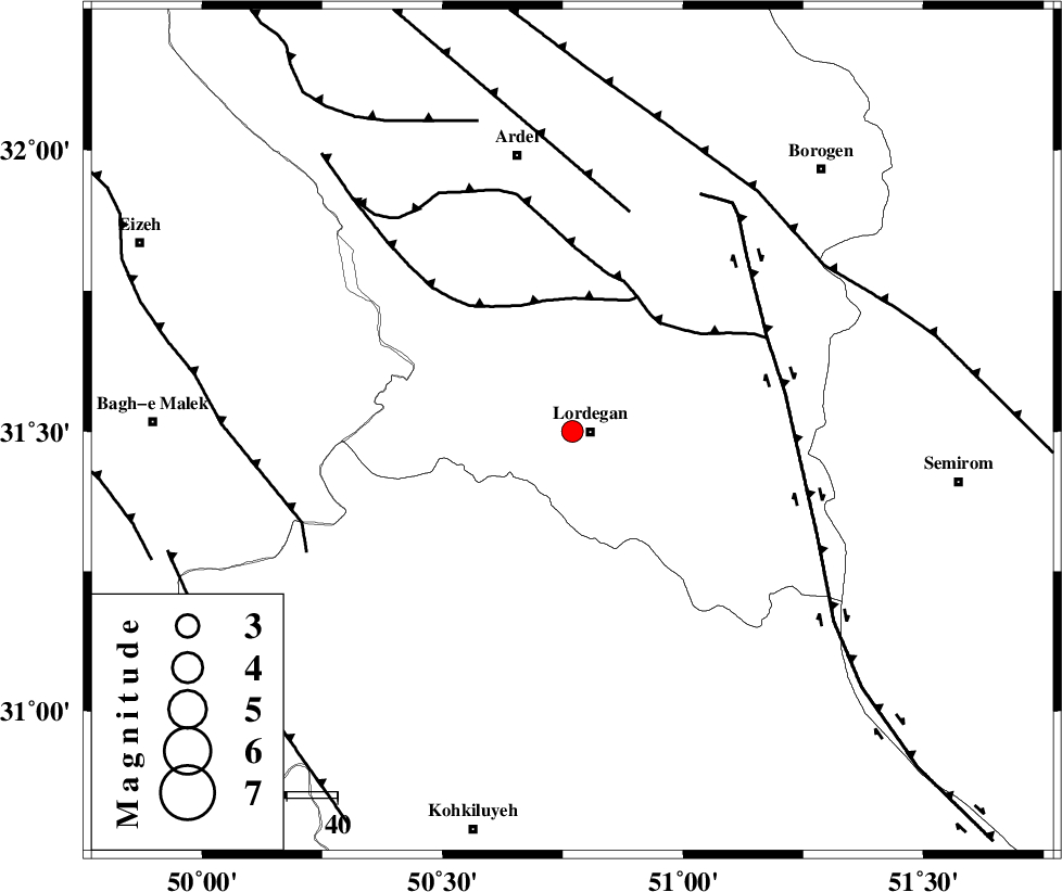 SABZKUH_F (Length: 67 km) , Distance to epicenter: 26 km | |