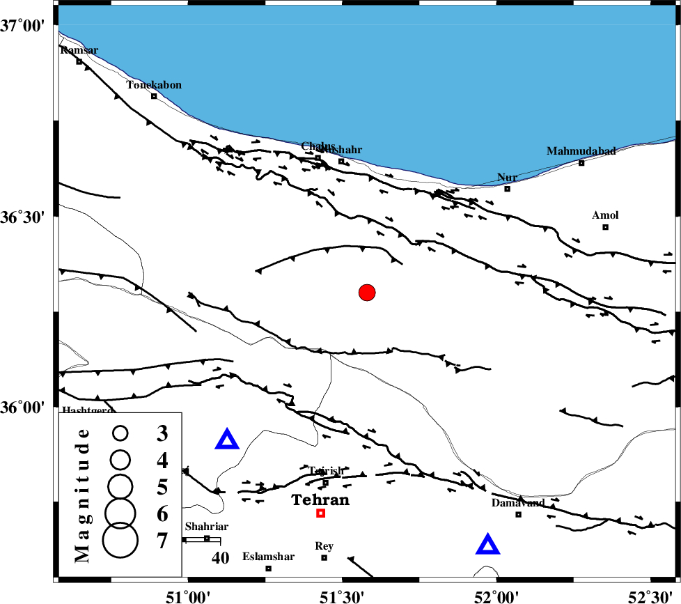 N_ALBORZ_F (Length: 360 km) , Distance to epicenter: 19 km | |