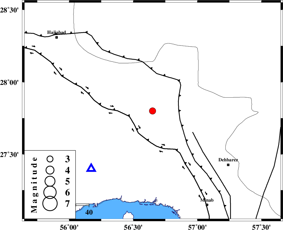 ZENDAN_MINAB_F_Z1 (Length: 183 km) , Distance to epicenter: 35 km