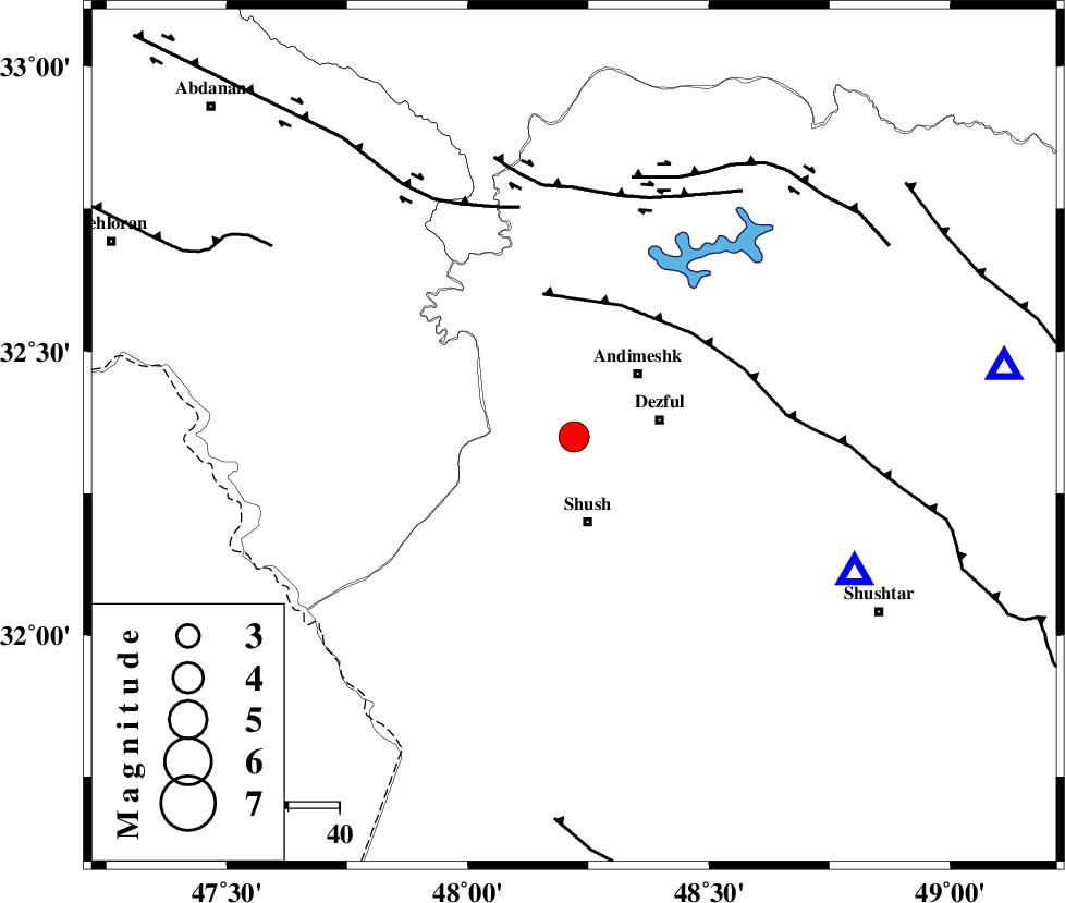 DEZFUL_EMBAYMENT (Length: 228 km) , Distance to epicenter: 27 km | |