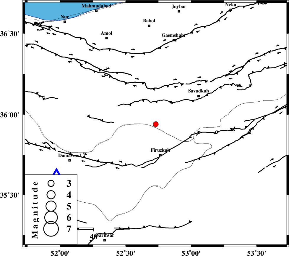 N_ALBORZ_F (Length: 360 km) , Distance to epicenter: 25 km | |