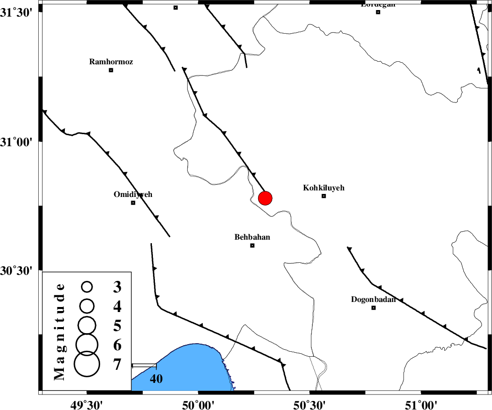 AGHAJARI_F (Length: 88 km) , Distance to epicenter: 44 km | |