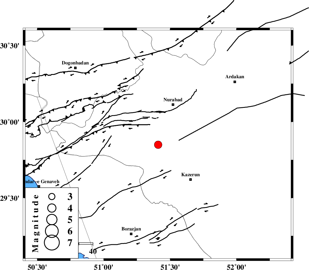KAZERUN_F (Length: 96 km) , Distance to epicenter: 15 km | |