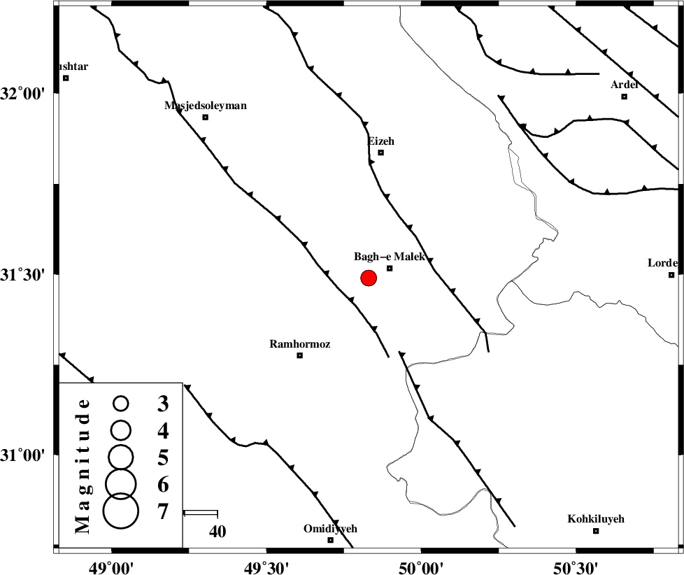 DEZFUL_EMBAYMENT (Length: 228 km) , Distance to epicenter: 9 km | |