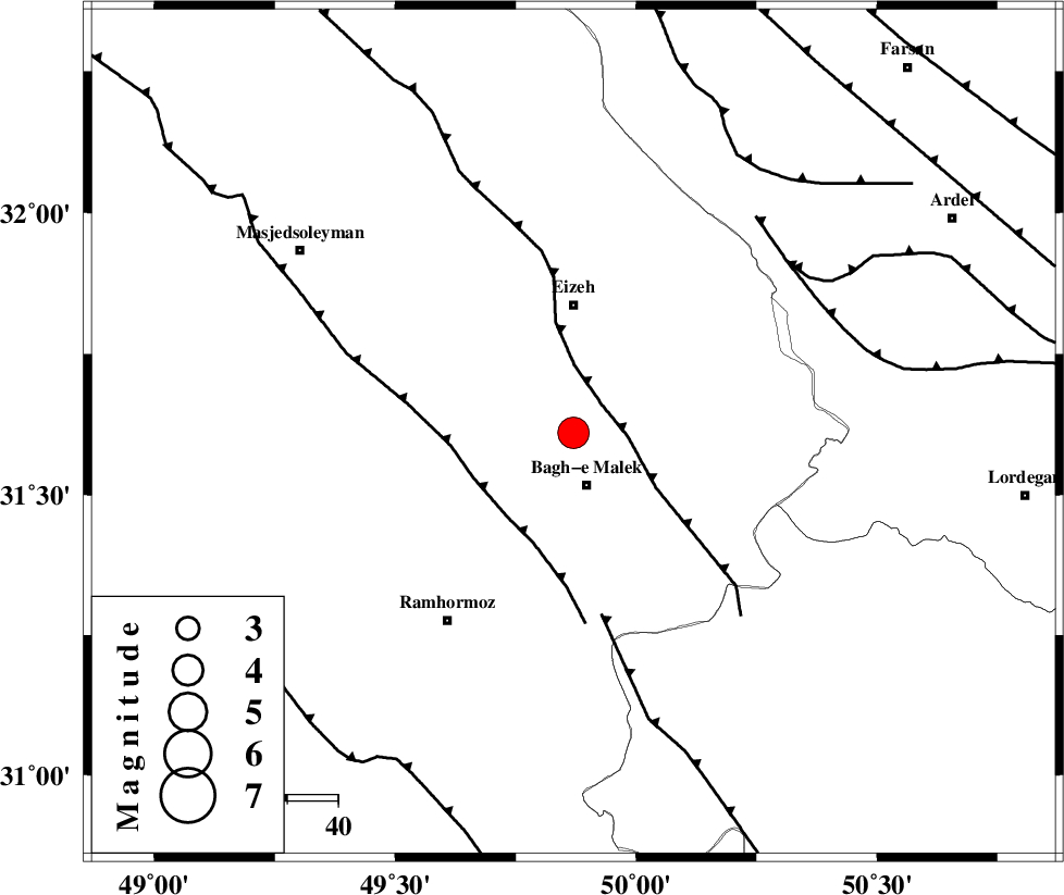 DEZFUL_EMBAYMENT (Length: 228 km) , Distance to epicenter: 21 km | |