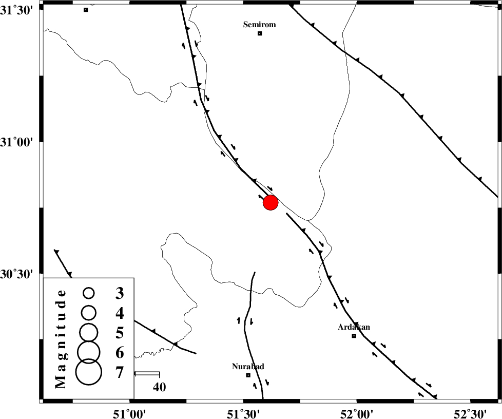 KAZERUN_F (Length: 96 km) , Distance to epicenter: 30 km