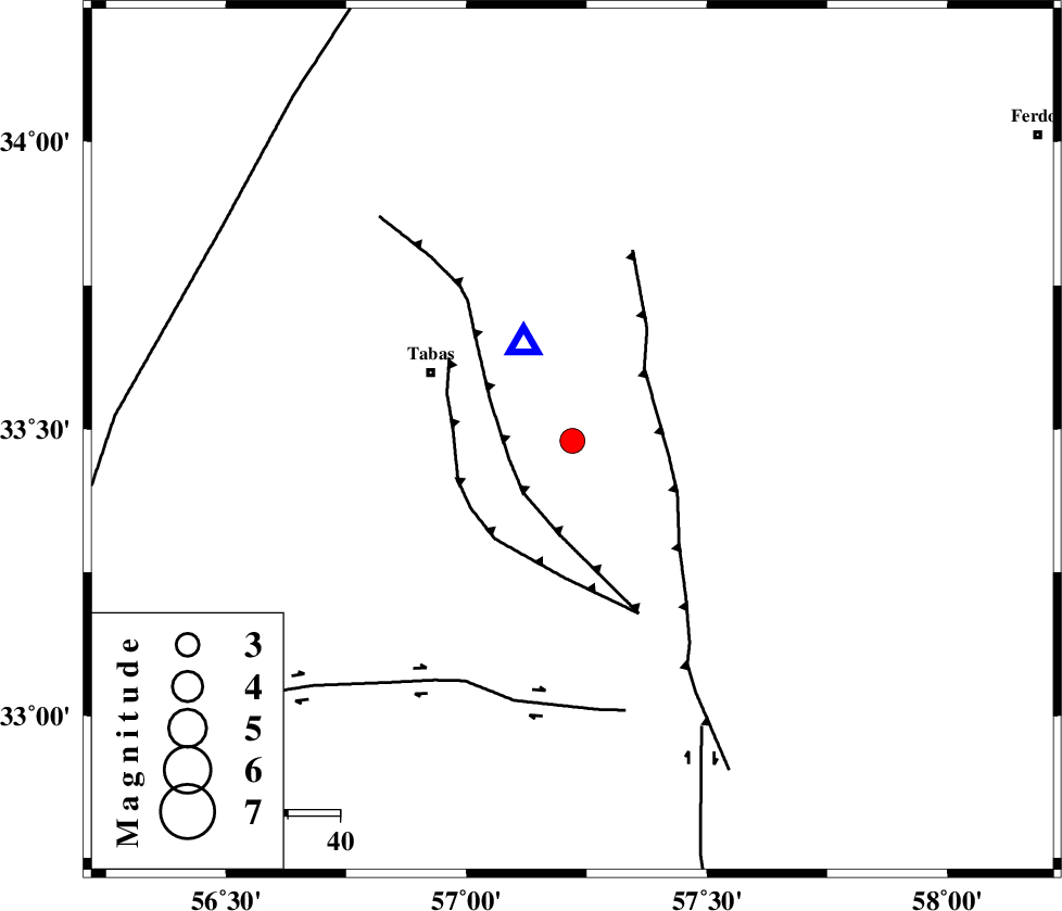 TABAS_F2 (Length: 67 km) , Distance to epicenter: 23 km