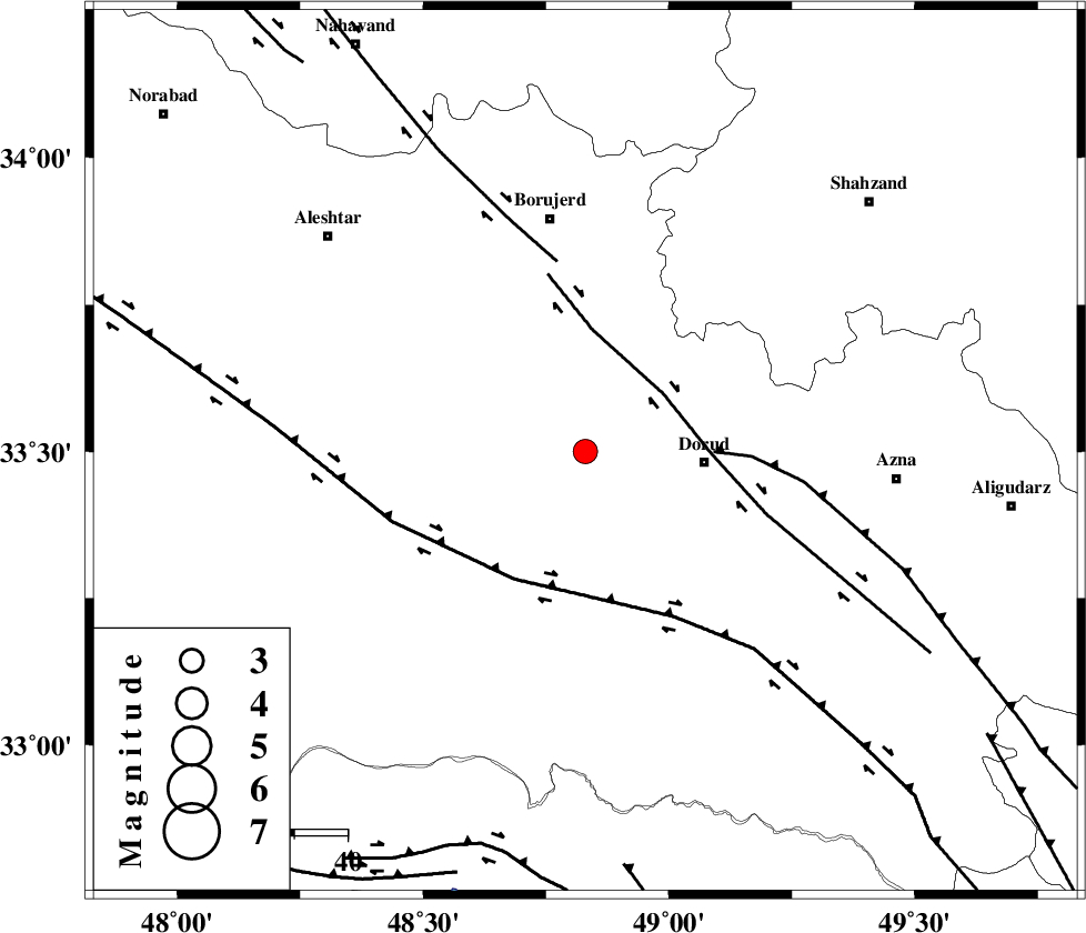 | MAIN_ZAGROS_R_F (Length: 1106 km) , Distance to epicenter: 24 km | |