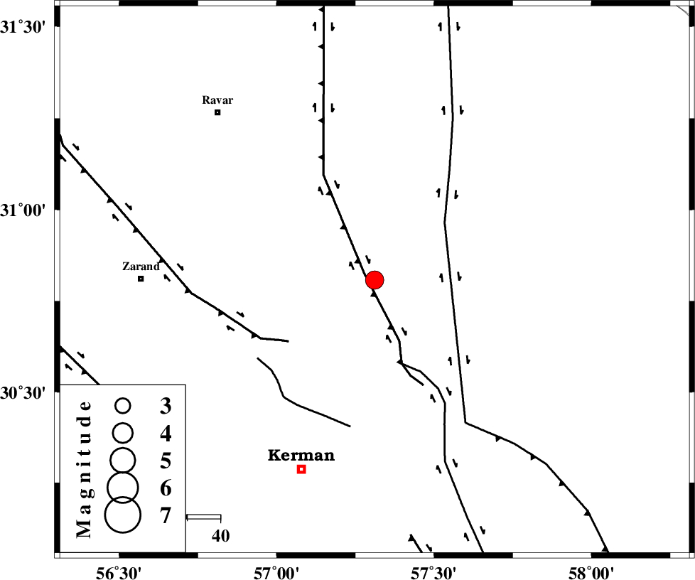 | NAYBAND_F (Length: 258 km) , Distance to epicenter: 28 km | |