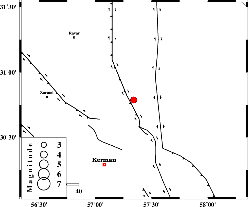 | NAYBAND_F (Length: 258 km) , Distance to epicenter: 27 km | |