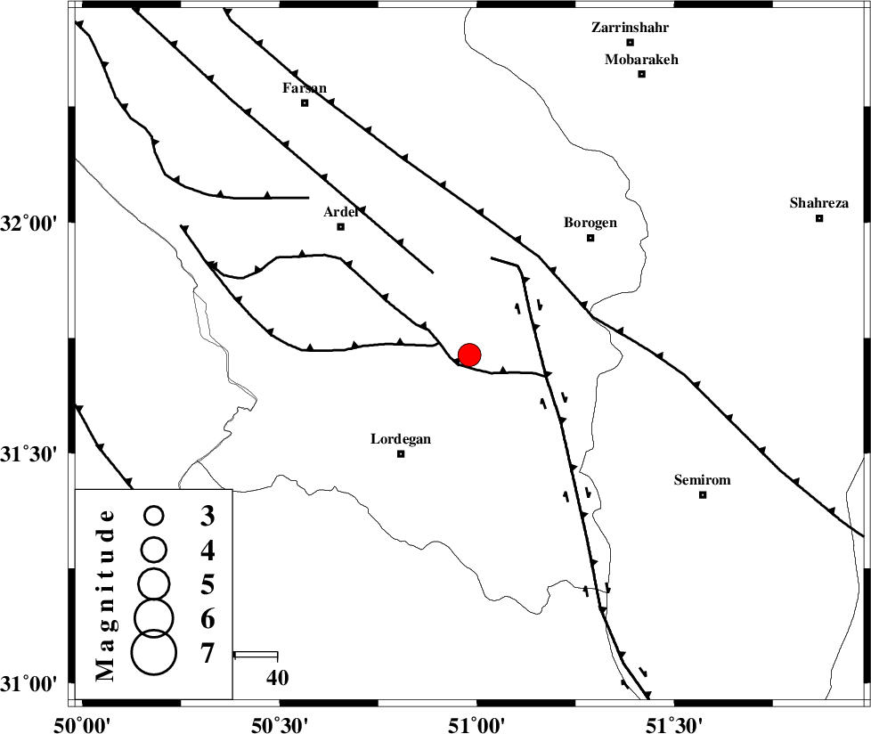 SABZKUH_F (Length: 67 km) , Distance to epicenter: 8 km | |