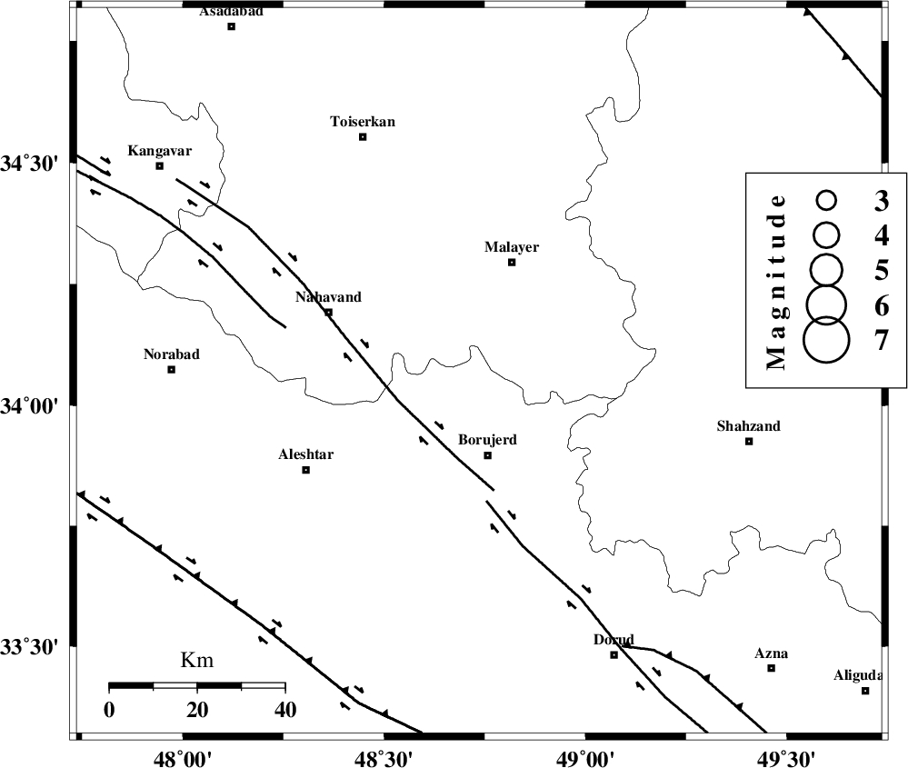 NAHAVAND_F (Length: 102 km) , Distance to epicenter: 20 km | |