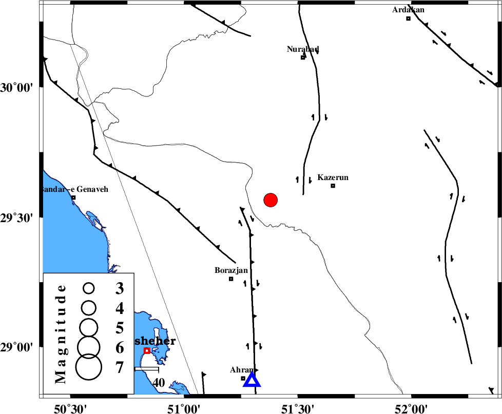 KAZERUN_F (Length: 96 km) , Distance to epicenter: 14 km | |