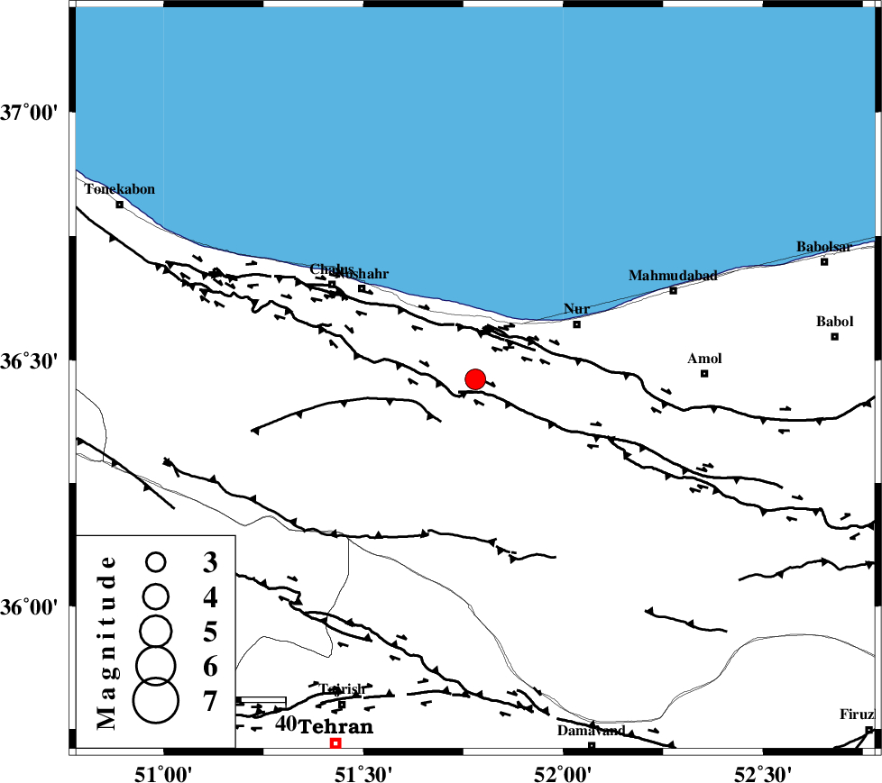 | N_ALBORZ_F (Length: 360 km) , Distance to epicenter: 5 km | |