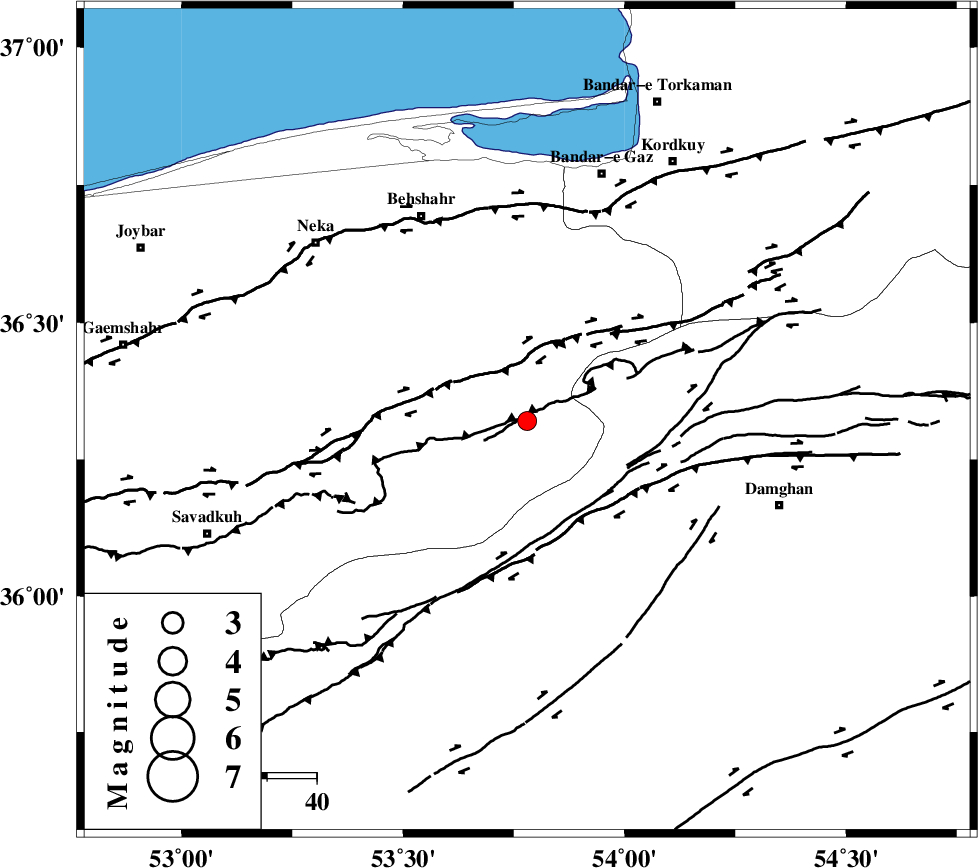 | N_ALBORZ_F (Length: 360 km) , Distance to epicenter: 13 km | |