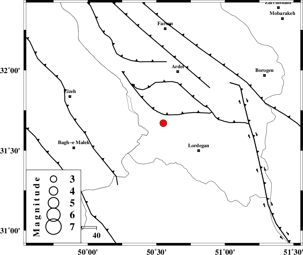 | SABZKUH_F (Length: 67 km) , Distance to epicenter: 6 km | |