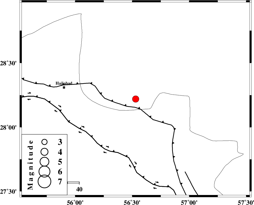 ZENDAN_MINAB_F_Z1 (Length: 183 km) , Distance to epicenter: 76 km