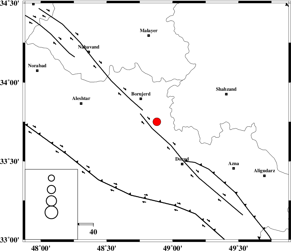 | MAIN_ZAGROS_R_F (Length: 1106 km) , Distance to epicenter: 34 km | |