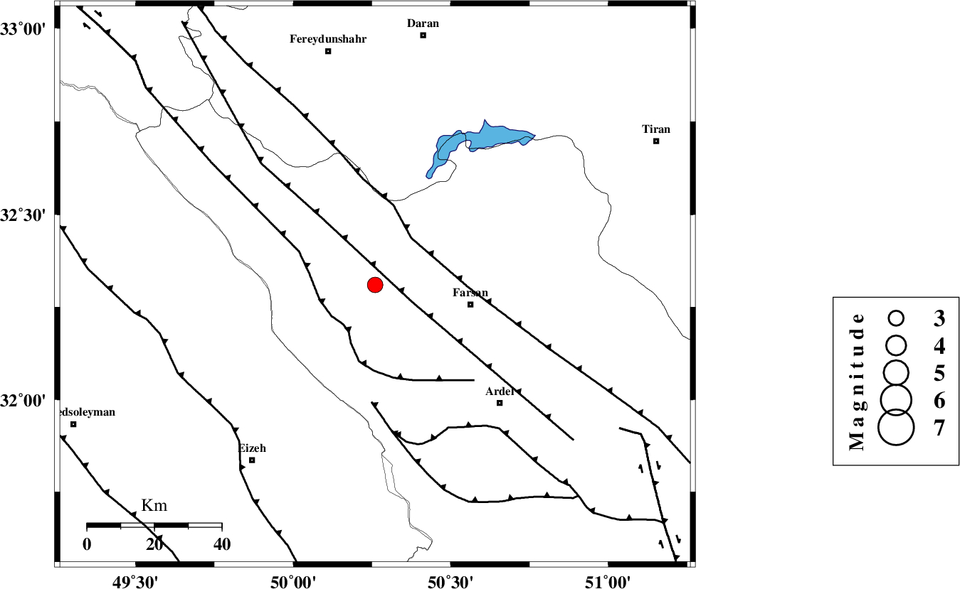 ZARDKUH_F (Length: 139 km) , Distance to epicenter: 15 km | |
