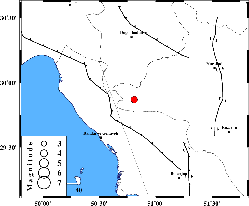 44 km North East of Bandar-e genaveh, Bushehr Province | |