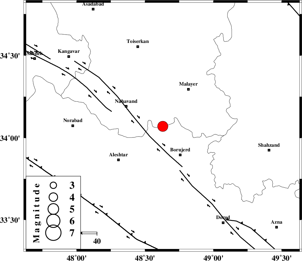 NAHAVAND_F (Length: 102 km) , Distance to epicenter: 11 km | |