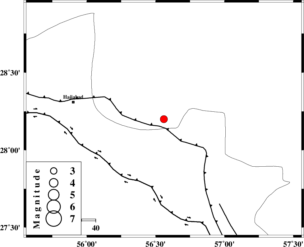 ZENDAN_MINAB_F_Z1 (Length: 183 km) , Distance to epicenter: 73 km