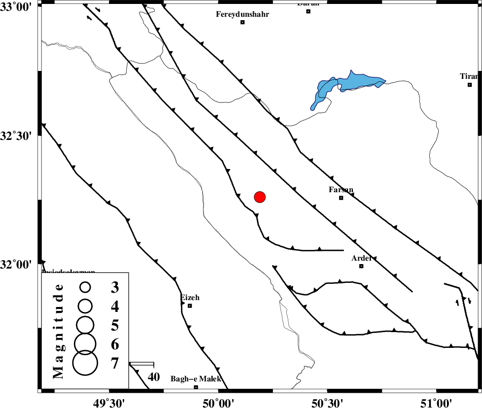 ZARDKUH_F (Length: 139 km) , Distance to epicenter: 7 km | |