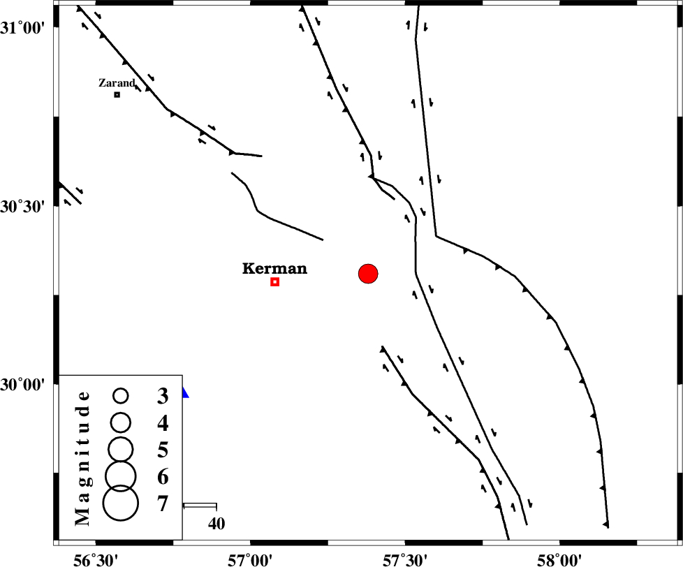 GOLBAF_SIRCH_F (Length: 114 km) , Distance to epicenter: 15 km | |
