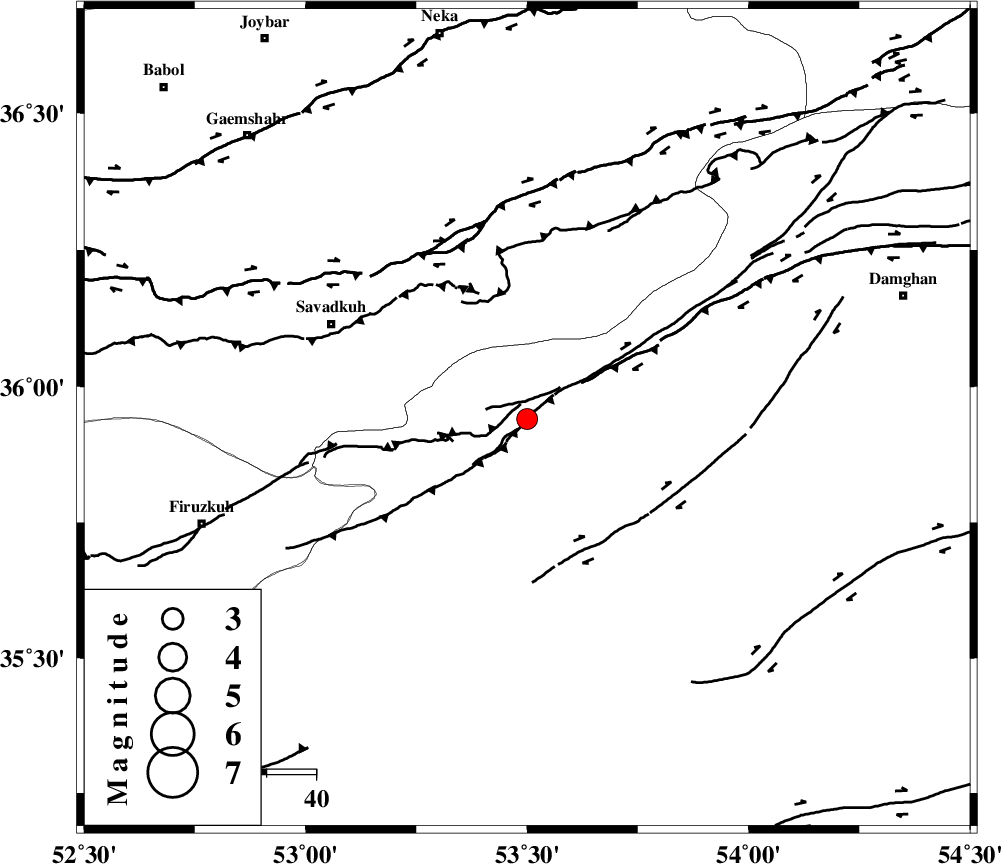 N_ALBORZ_F (Length: 360 km) , Distance to epicenter: 40 km | |