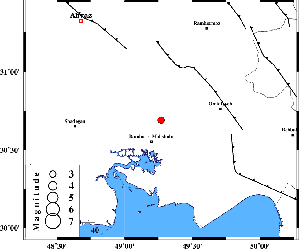 AGHAJARI_F (Length: 88 km) , Distance to epicenter: 40 km | |