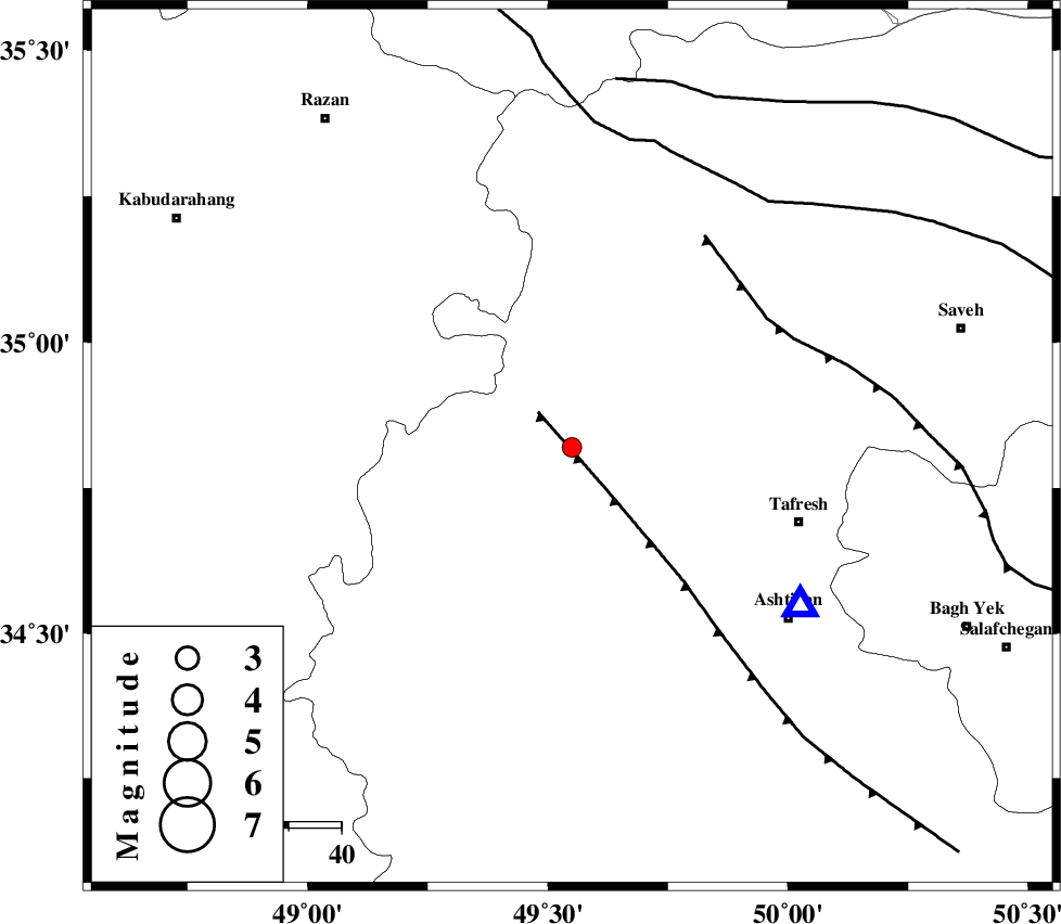 TAFRESH_F (Length: 117 km) , Distance to epicenter: 9 km | |