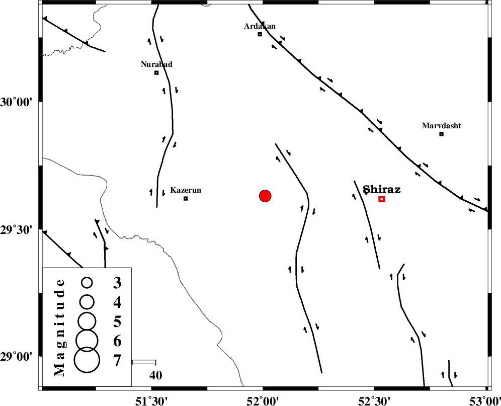 KAZERUN_F (Length: 96 km) , Distance to epicenter: 47 km | |