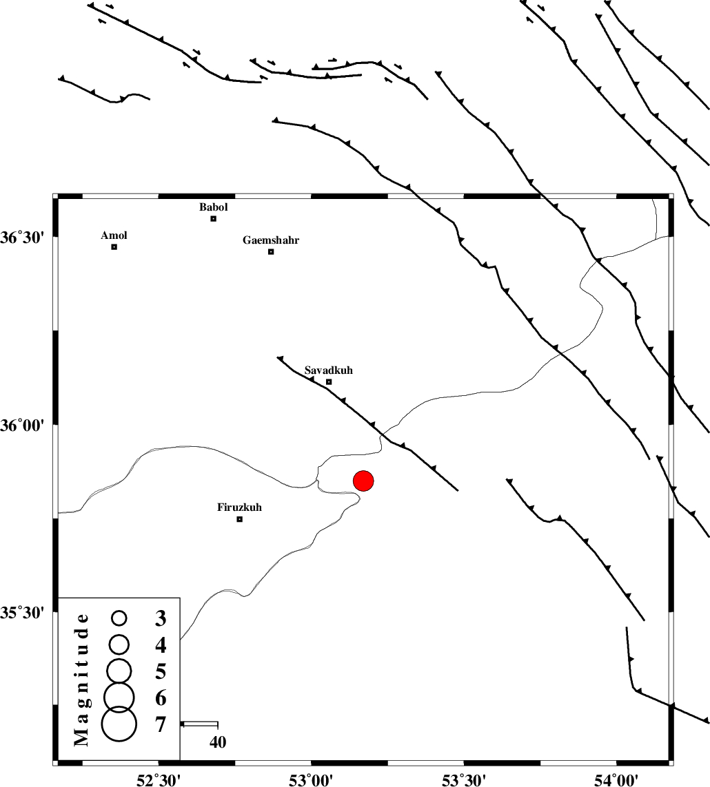 N_ALBORZ_F (Length: 360 km) , Distance to epicenter: 40 km | |