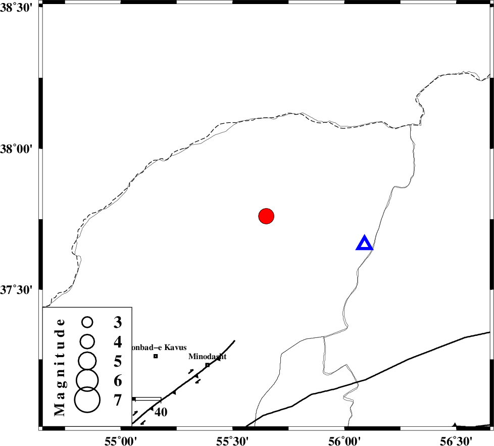 KHAZAR_F (Length: 523 km) , Distance to epicenter: 103 km | |