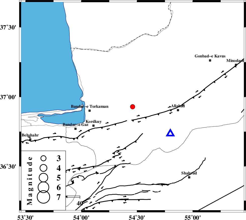 KHAZAR_F (Length: 523 km) , Distance to epicenter: 9 km | |