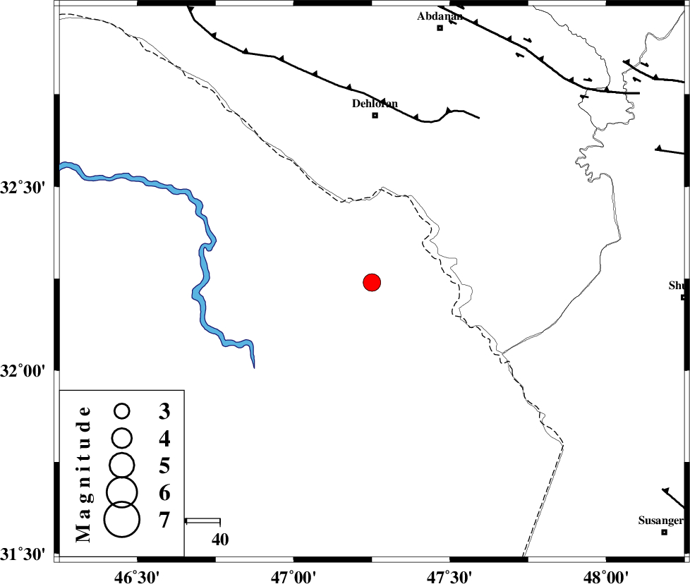 DEZFUL_EMBAYMENT (Length: 228 km) , Distance to epicenter: 94 km | |