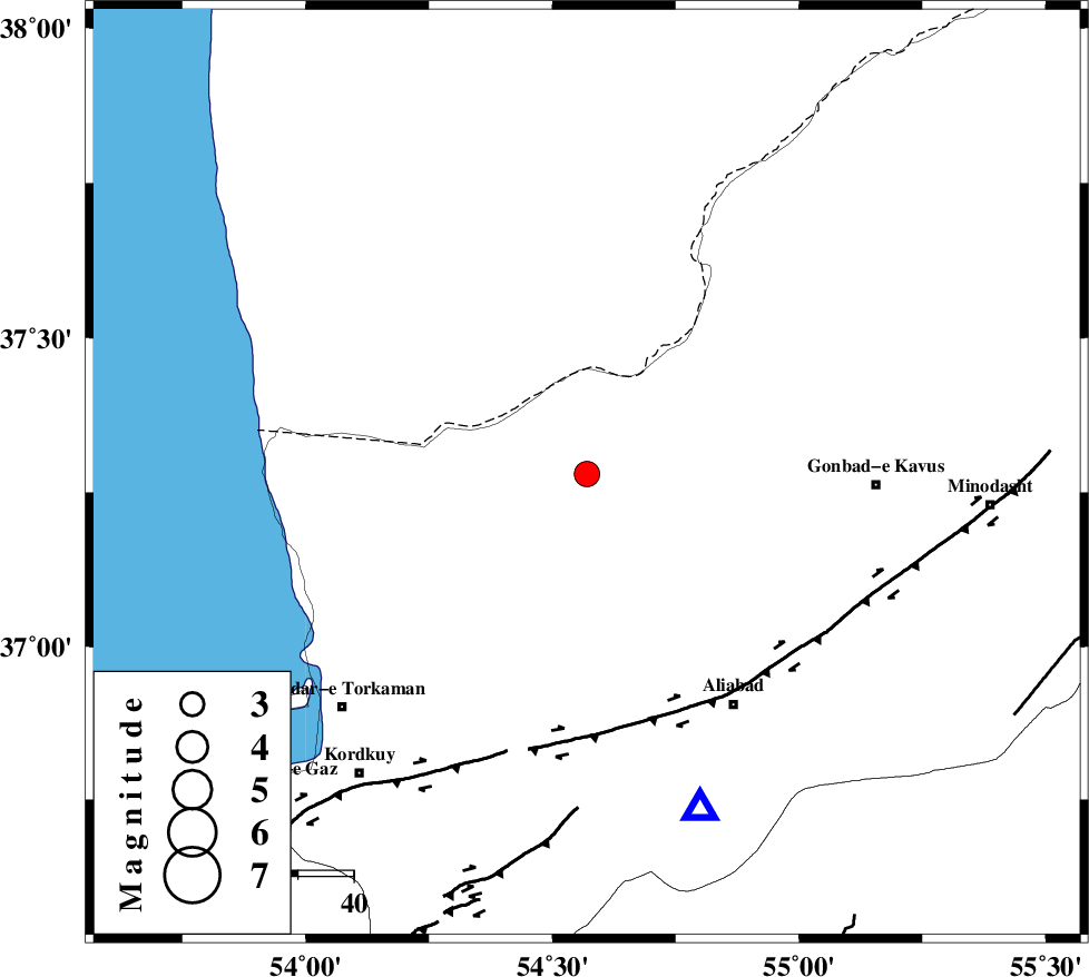 KHAZAR_F (Length: 523 km) , Distance to epicenter: 46 km | |