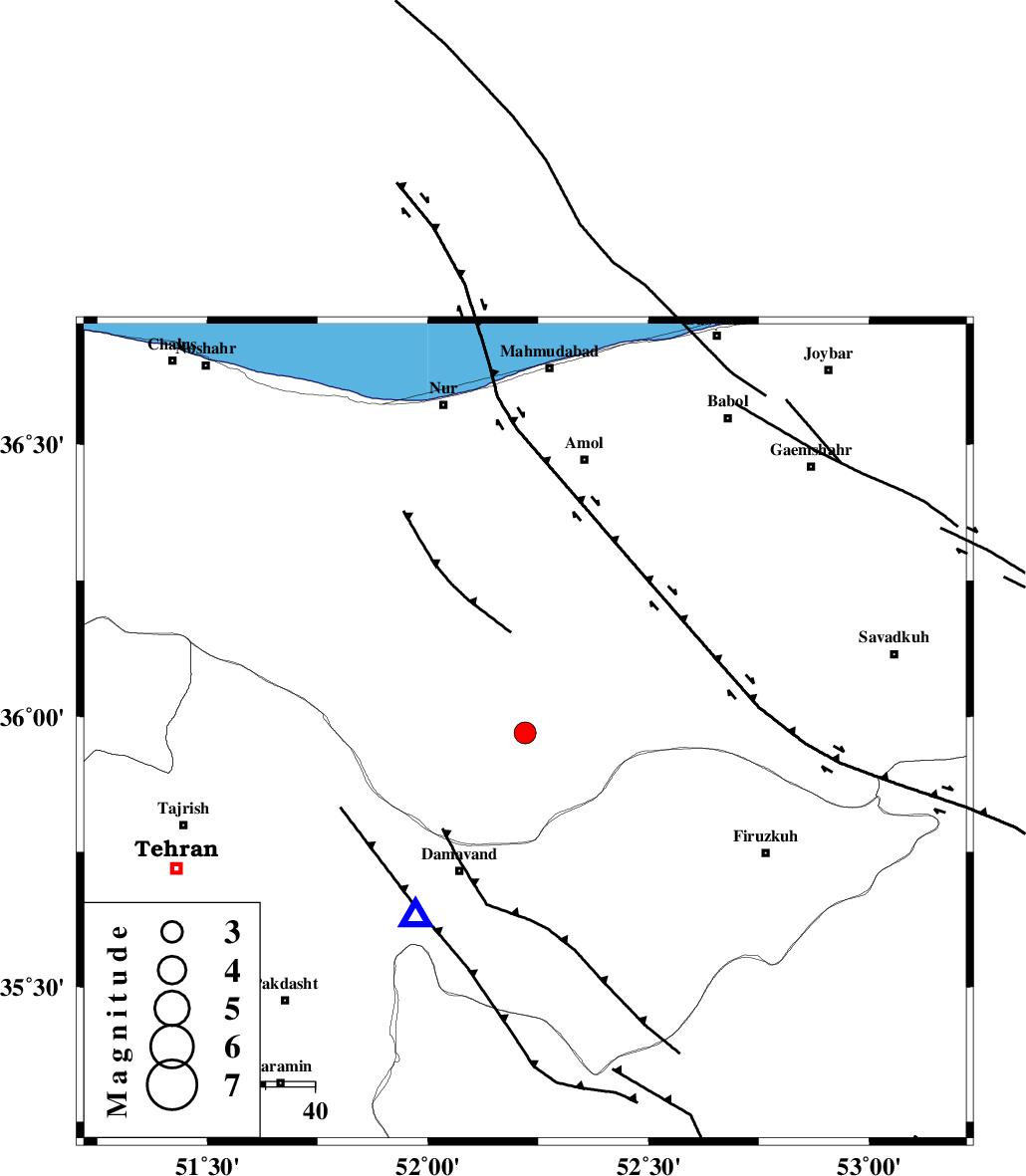 N_ALBORZ_F (Length: 360 km) , Distance to epicenter: 35 km | |