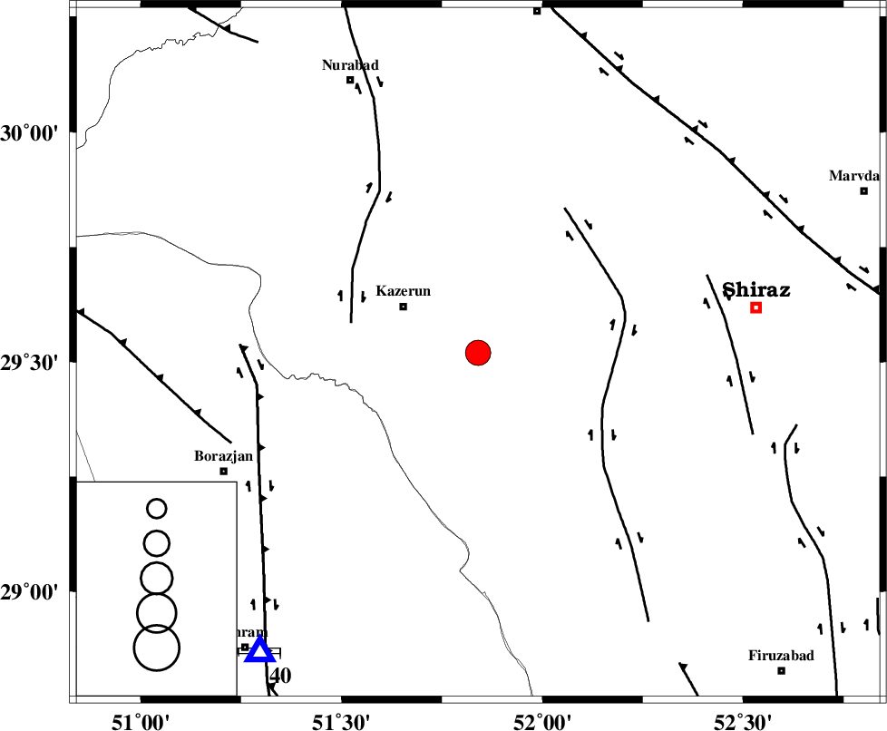 KAZERUN_F (Length: 96 km) , Distance to epicenter: 31 km | |