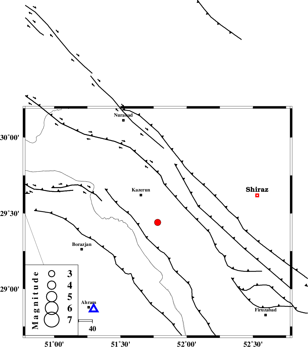 KAZERUN_F (Length: 96 km) , Distance to epicenter: 30 km