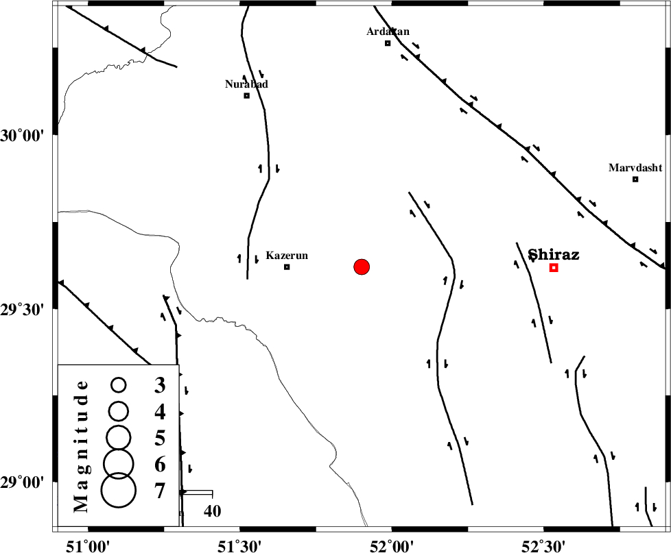 KAZERUN_F (Length: 96 km) , Distance to epicenter: 37 km | |