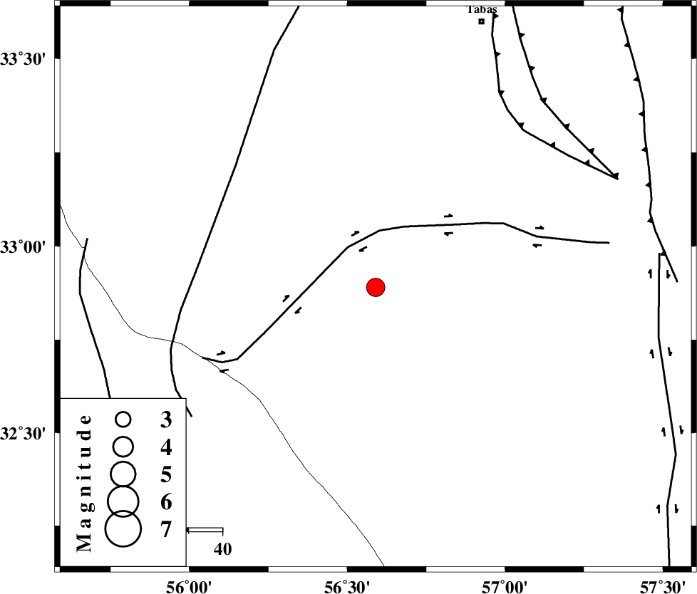TABAS_F2 (Length: 67 km) , Distance to epicenter: 64 km | |